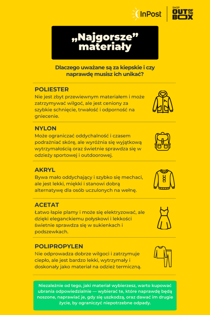 Przygotowaliśmy listę najgorszych materiałów na ubrania, których warto unikać. Jeżeli możesz, to postaraj się nie wybierać odzieży wykonanej z: